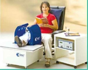 Центральный элемент терапевтического аппарата MBST представляет собой магнитную катушку, в центре которой размещается сустав (Рис. 1). Релевантные процедурные терапевтические параметры, такие как сила поля, частота резонанса и время процедуры считываются посредством отдельного блока управления с помощью запрограммированных чип-карт.