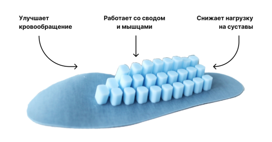 Оказывают массажный эффектСиликоновые опоры стелек KinezioStep производят точечный массаж рефлекторных зон стопы